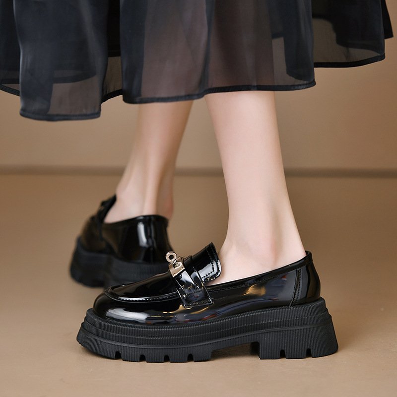 - Locking British style small leather shoes for women in spring and summer single shoes thick sole height-enhancing simple casual shoes for women